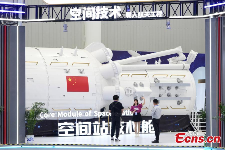 A core module of a space station attracts media attention on an exhibition to celebrate the Space Day of China in Wuhan, Central China’s Hubei Province, April 23, 2024. (Photo: China News Service/Cui Nan)