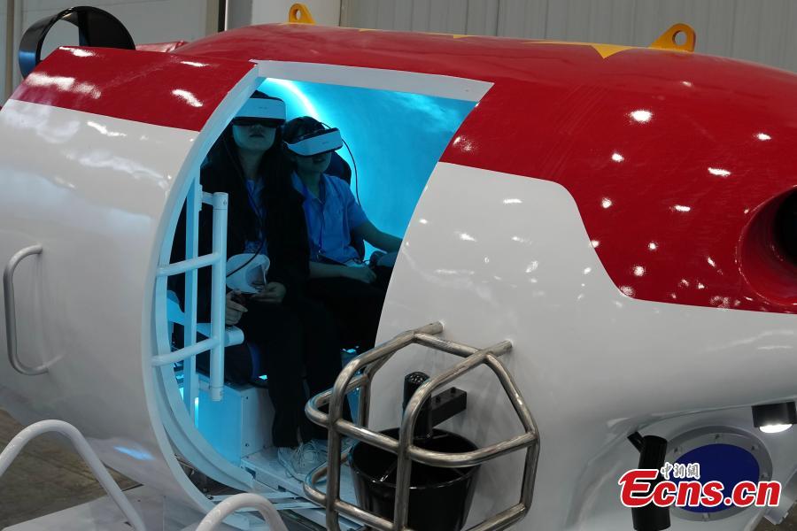 Volunteers experience deep-sea themed VR equipment on an exhibition to celebrate the Space Day of China in Wuhan, Central China’s Hubei Province, April 23, 2024. (Photo: China News Service/Cui Nan)
