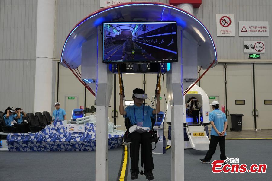 Volunteers experience VR equipment on an exhibition to celebrate the Space Day of China in Wuhan, Central China’s Hubei Province, April 23, 2024. (Photo: China News Service/Cui Nan)