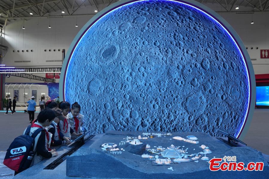 A group of young journalists visit the exhibition to celebrate the Space Day of China in Wuhan, Central China’s Hubei Province, April 23, 2024. (Photo: China News Service/Cui Nan)