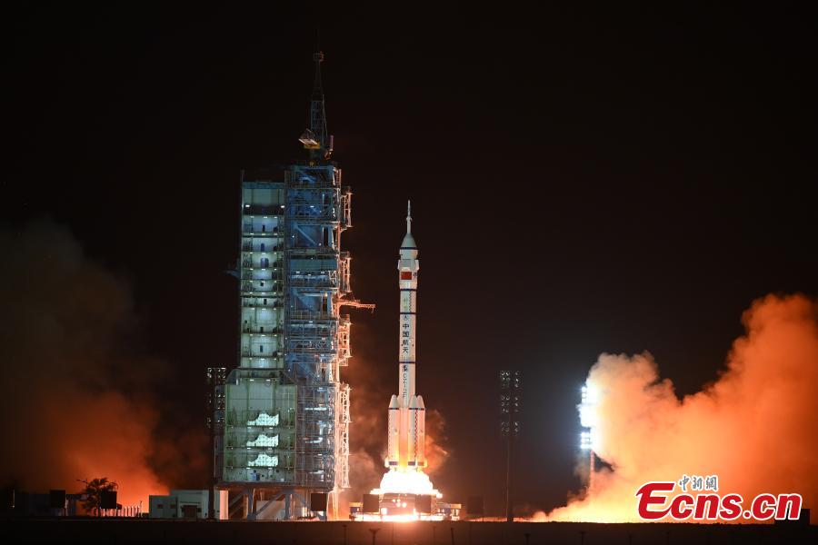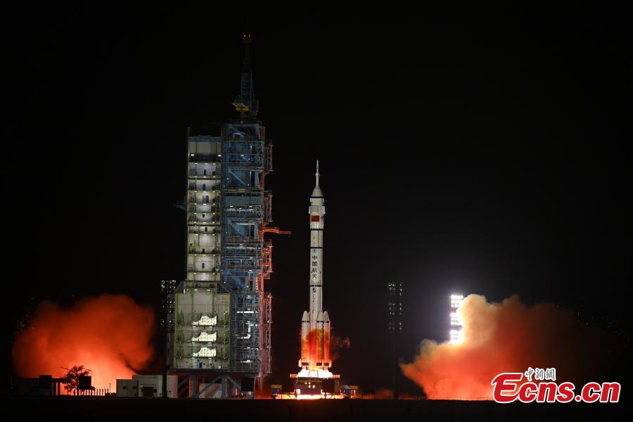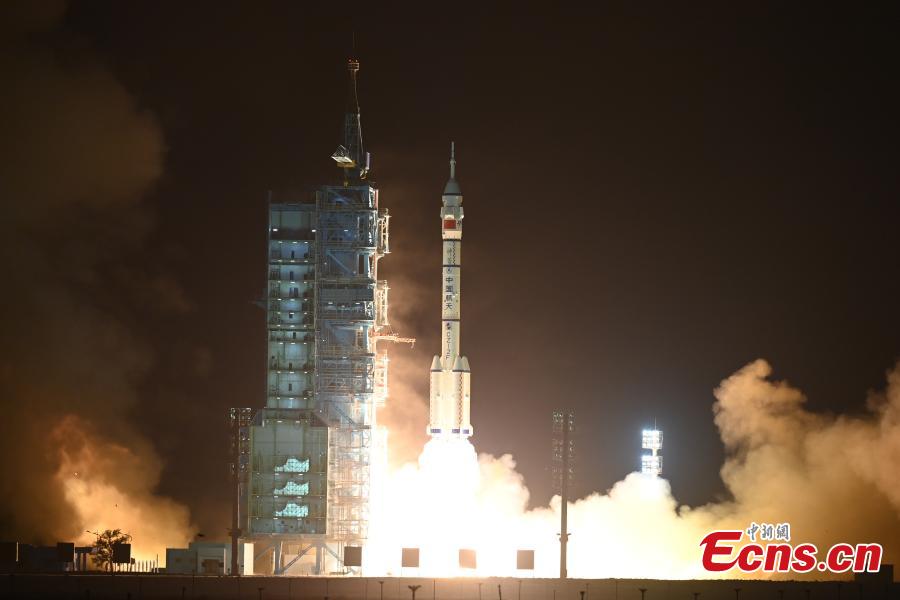 A Long March 2F carrier rocket carrying the Shenzhou-18 manned spaceship, blasts off from the Jiuquan Satellite Launch Center in northwest China, April 25, 2024. (Photo: China News Service/Wang Jiangbo)