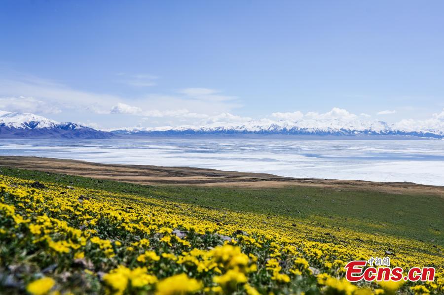 Blooming flowers along the shore of the Sayram Lake, adding colors to the alpine lake in northwest China's Xinjiang Uyghur Autonomous Region. (Photo: China News Service/Zhong Dawei)
