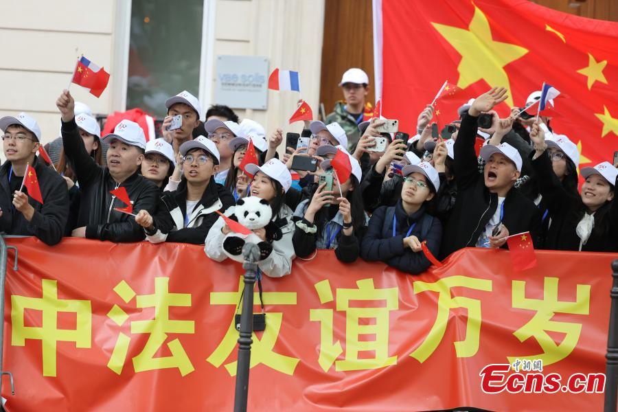 People gather on the streets of Paris waving Chinese and French flags to welcome Chinese President Xi Jinping in Paris, France, May 5, 2024. (Photo: China News Service/Sheng Jiapeng)