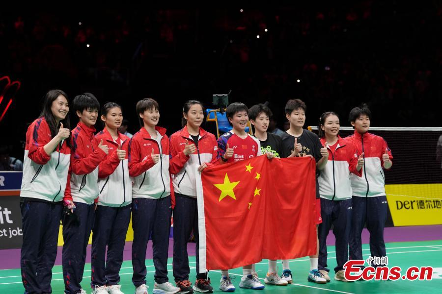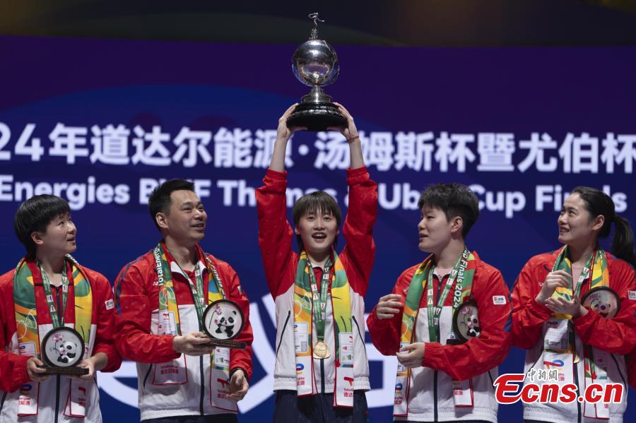 Team China celebrate during the awarding ceremony of the BWF Uber Cup Finals in Chengdu, southwest China's Sichuan Province, May 5, 2024. (Photo: China News Service/An Yuan)