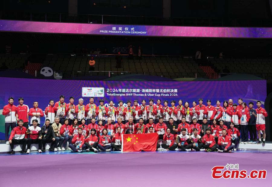 Team China pose for photograph after the awarding ceremony of the BWF Uber Cup Finals in Chengdu, southwest China's Sichuan Province, May 5, 2024. (Photo: China News Service/An Yuan)