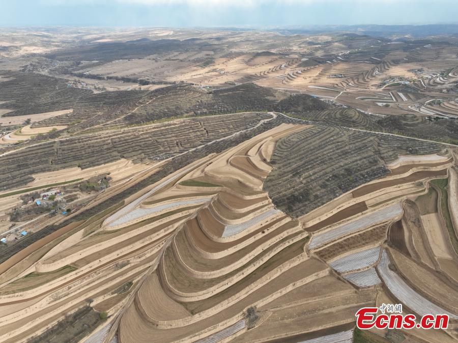Spectacular scenery of terraced fields on the loess plateau in Pengyang, northwest China's Ningxia Hui Autonomous Region, May 5, 2024. (Photo: China News Service/Yu Jing)