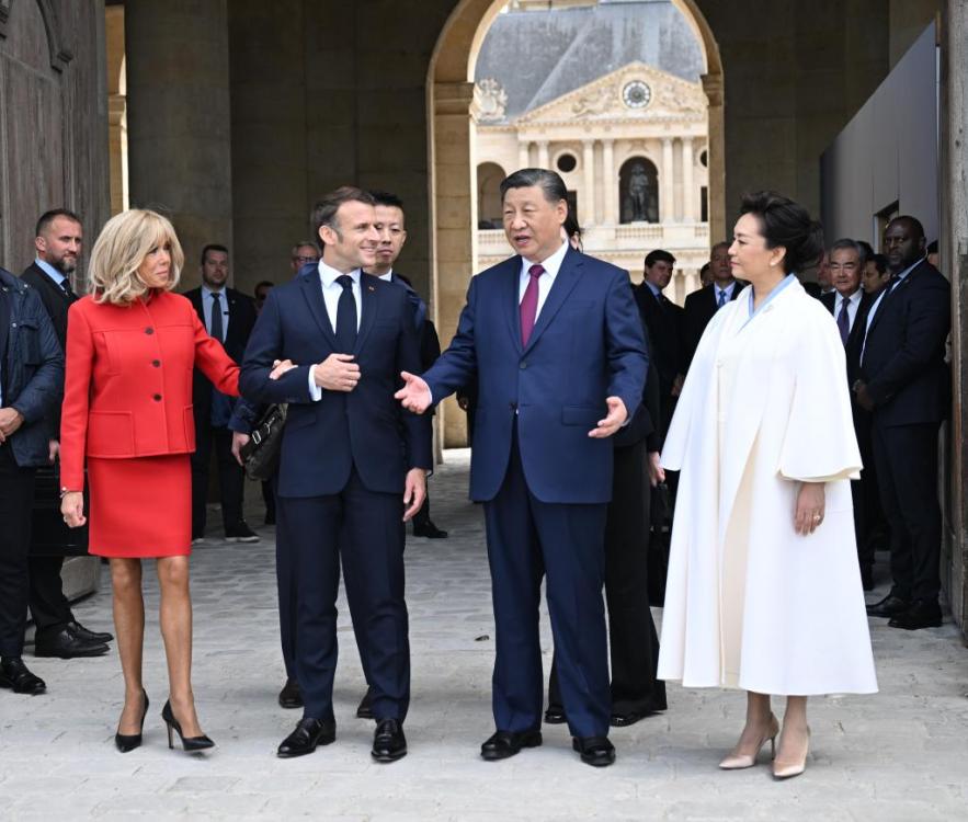 Chinese President Xi Jinping on Monday attended a welcome ceremony held by French President Emmanuel Macron.