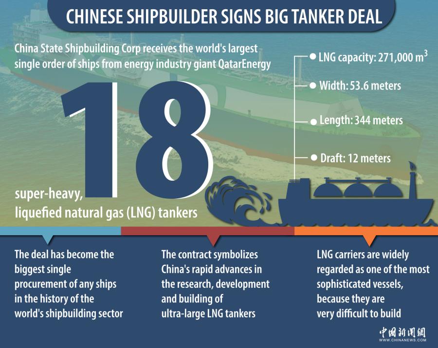 China State Shipbuilding Corp, one of the world's largest shipbuilders, has received what it calls the largest single global order of ships from energy industry giant QatarEnergy.
