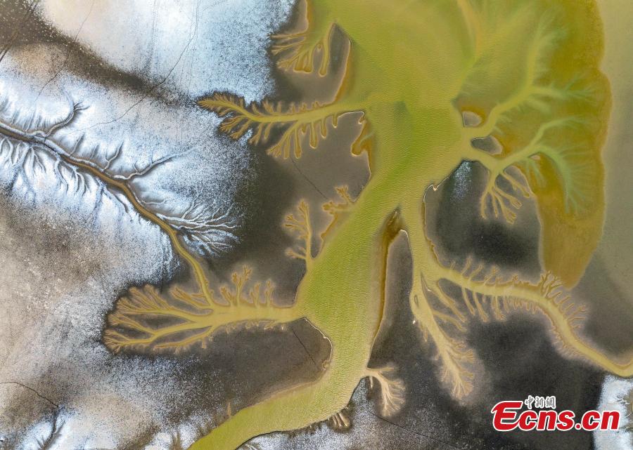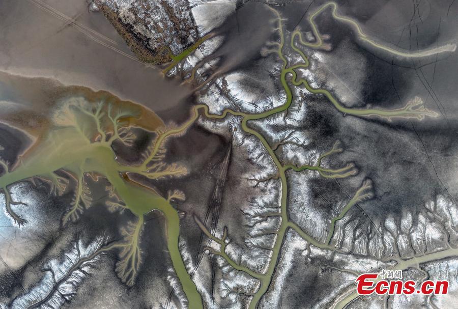 A stunning natural wonder of "tidal trees" emerged on the Yellow River wetland in Yancheng, east China's Jiangsu Province. (Photo provided to China News Service)