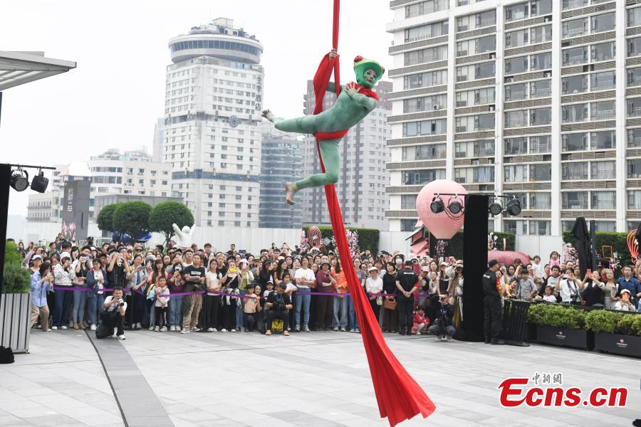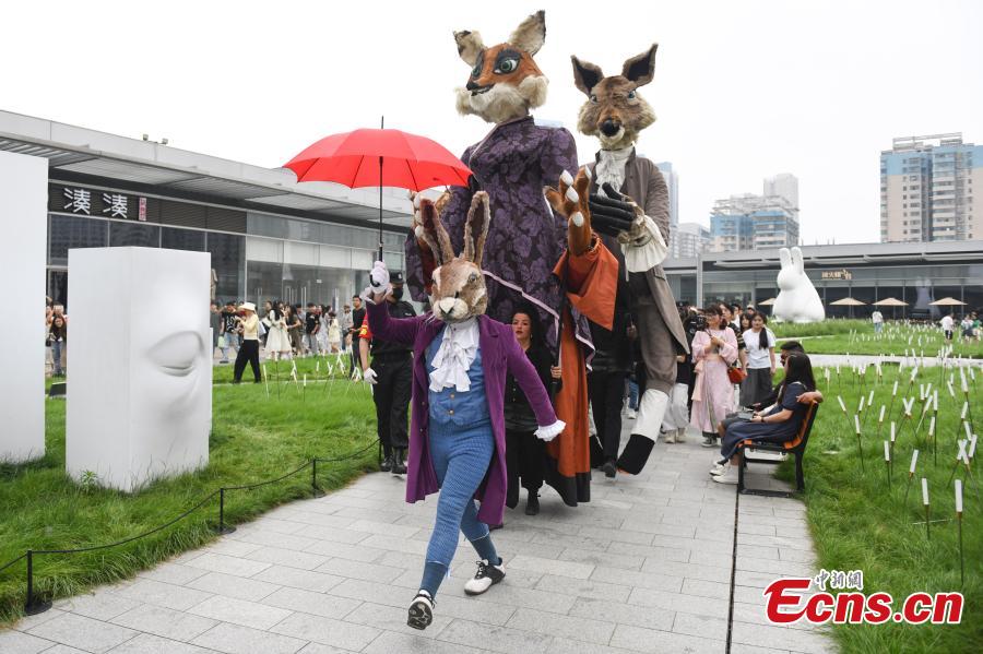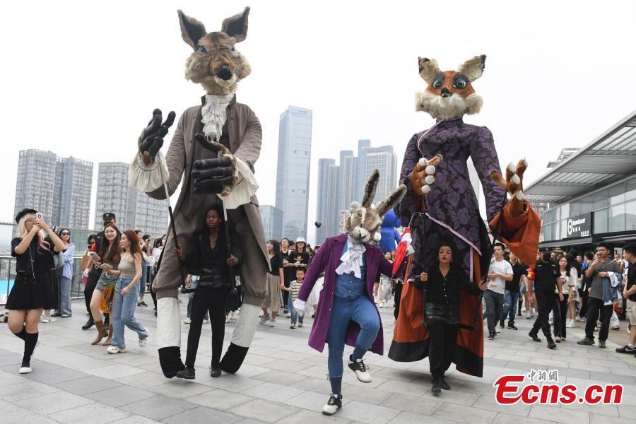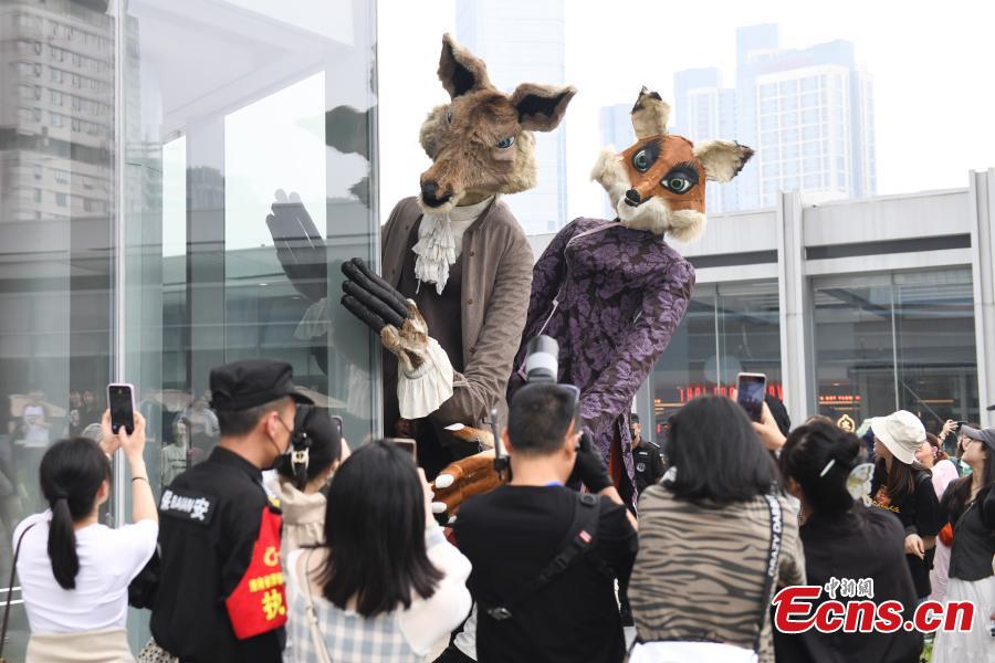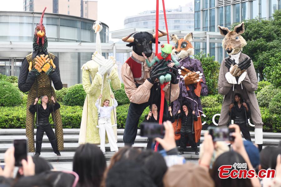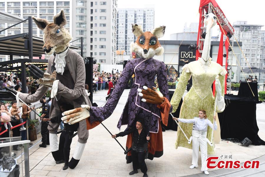 A free street performance of the giant puppet show "Fables of La Fontaine" is staged in Wuhan, central China's Hubei Province, May 7, 2024. (Photo: China News Service/Yang Huafeng)