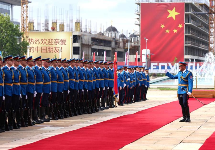 Chinese President Xi Jinping attends a welcome ceremony held by Serbian President Aleksandar Vucic in Belgrade, Serbia, May 8, 2024. (Xinhua/Pang Xinglei)