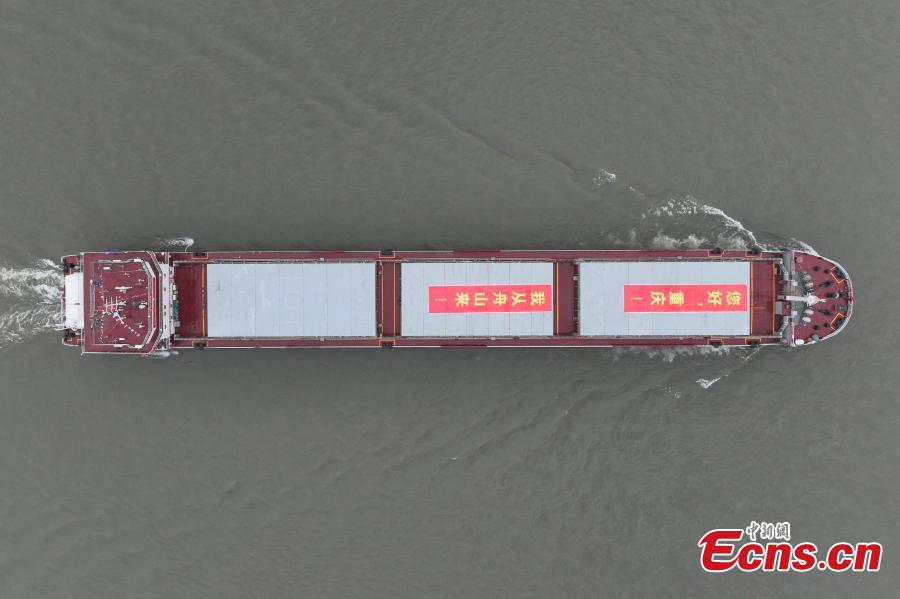 Carrying over 5,000 metric tons of soy beans, departed from Zhoushan Port in east China's Zhejiang Province on April 24, 2024. It traveled via the Chongqing-Zhoushan river-sea direct route, which links directly the municipality in the upper reaches of the Yangtze River with the sea.