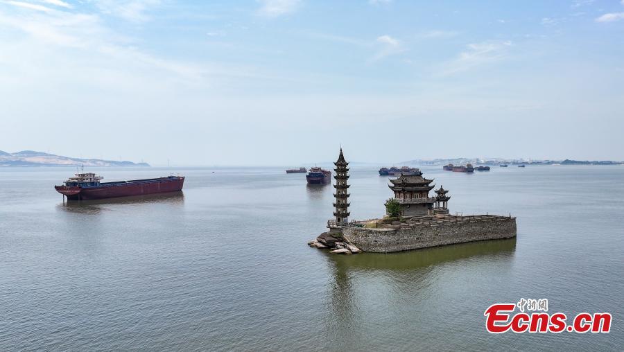 The historic site of Luoxingdun Island is submerged in Poyang Lake of Lushan City, east China's Jiangxi Province, May 19, 2024. (Photo: China News Service/Wei Dongsheng)