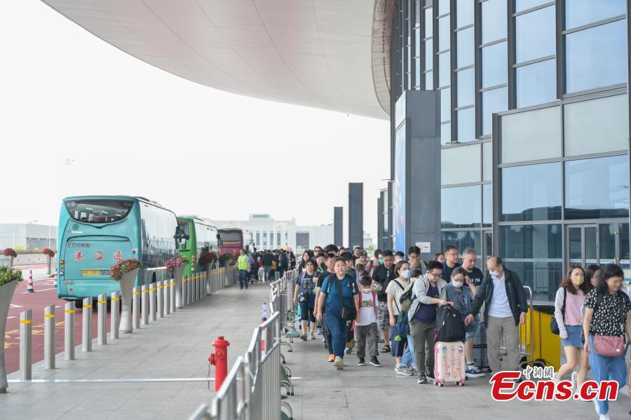 Photo taken on March 30, 2024 shows visitors arriving at Zhuhai Port on the Hong Kong-Zhuhai-Macao Bridge, south China's Guangdong Province. (Photo: China News Service/Chen Jimin)