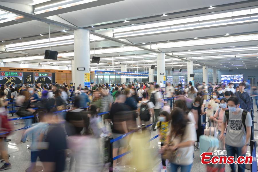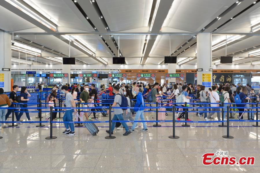 Photo taken on March 30, 2024 shows visitors queuing to pass a customs checkpoint at Zhuhai Port, south China's Guangdong Province. (Photo: China News Service/Chen Jimin)