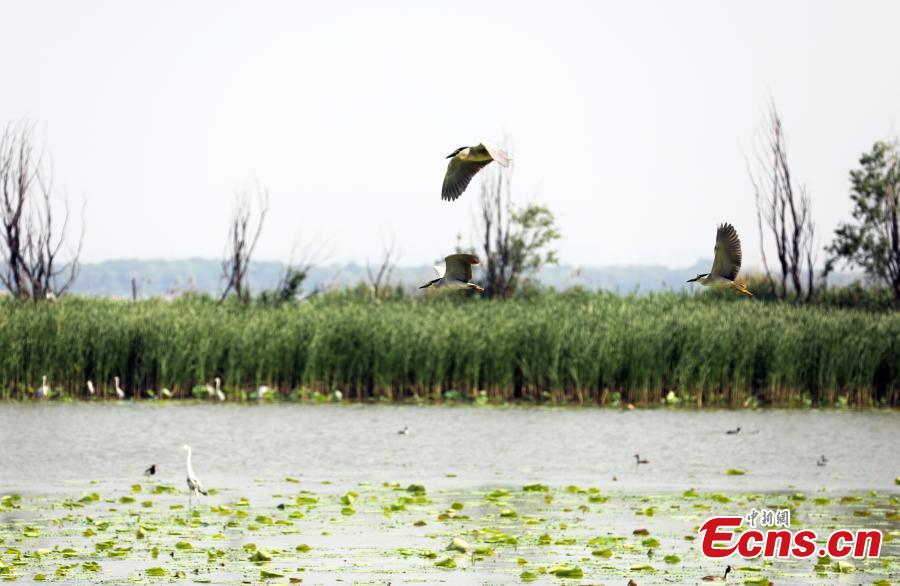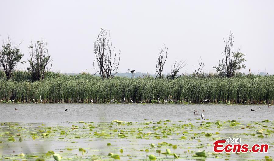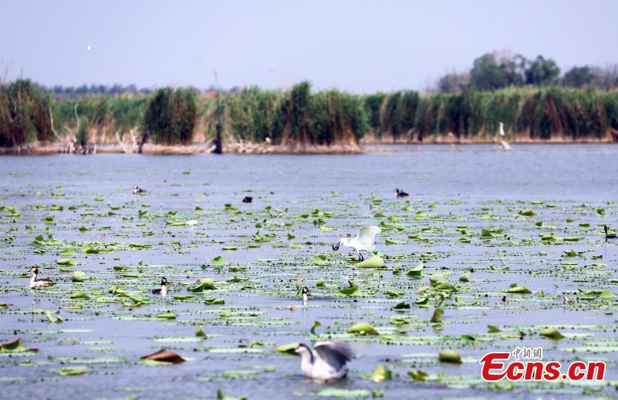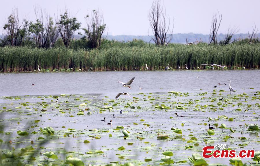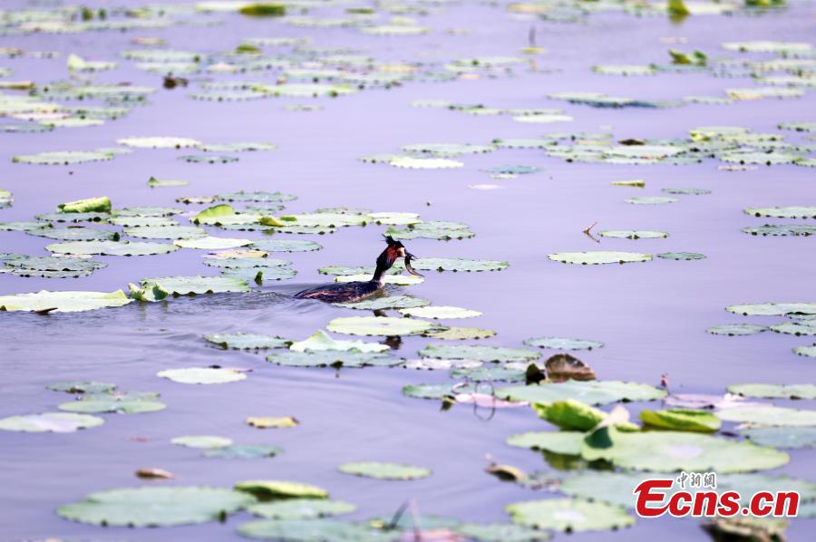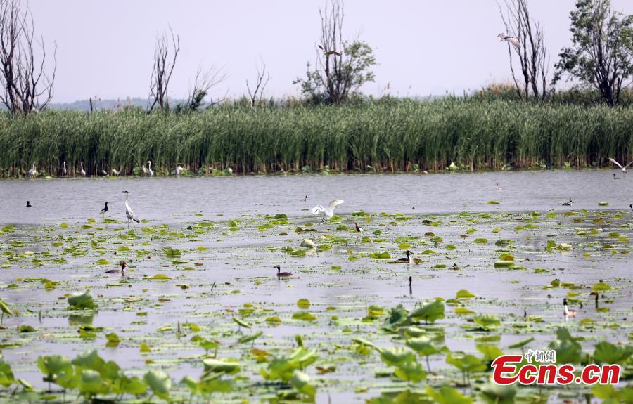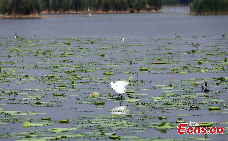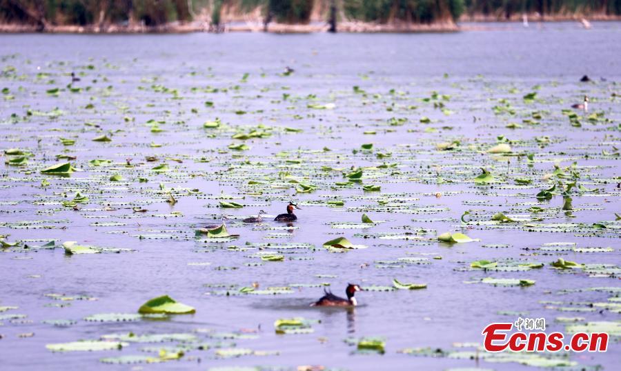 Birds swim in the Hengshui Lake National Nature Reserve in north China's Hebei Province, May 22, 2024. (Photo: China News Service/Zhang Kai)