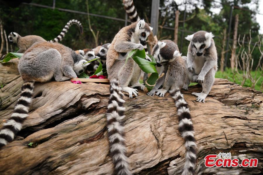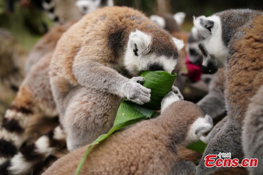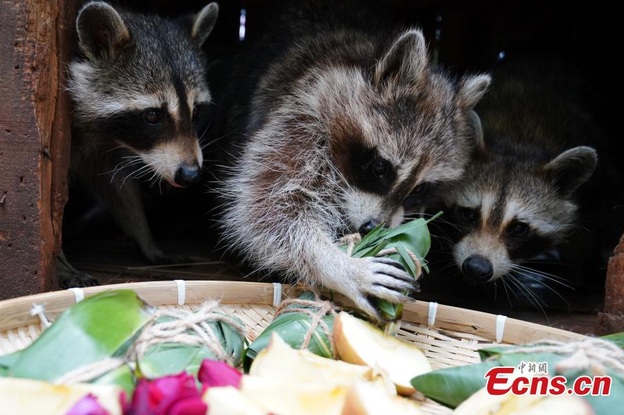 Raccoons enjoy special Zongzi ahead of the Dragon Boat Festival at Yunan Zoo in southwest China's Yunnan Province, June 5, 2024. (Photo: China News Service/Liu Ranyang)