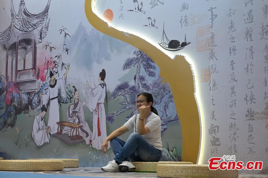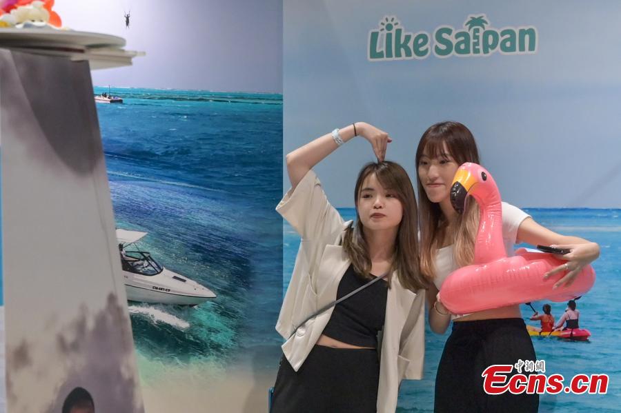 A visitors takes a photo at the 38th International Travel Expo Hong Kong (ITE). (Photo: China News Service/ Chen Yongnuo)