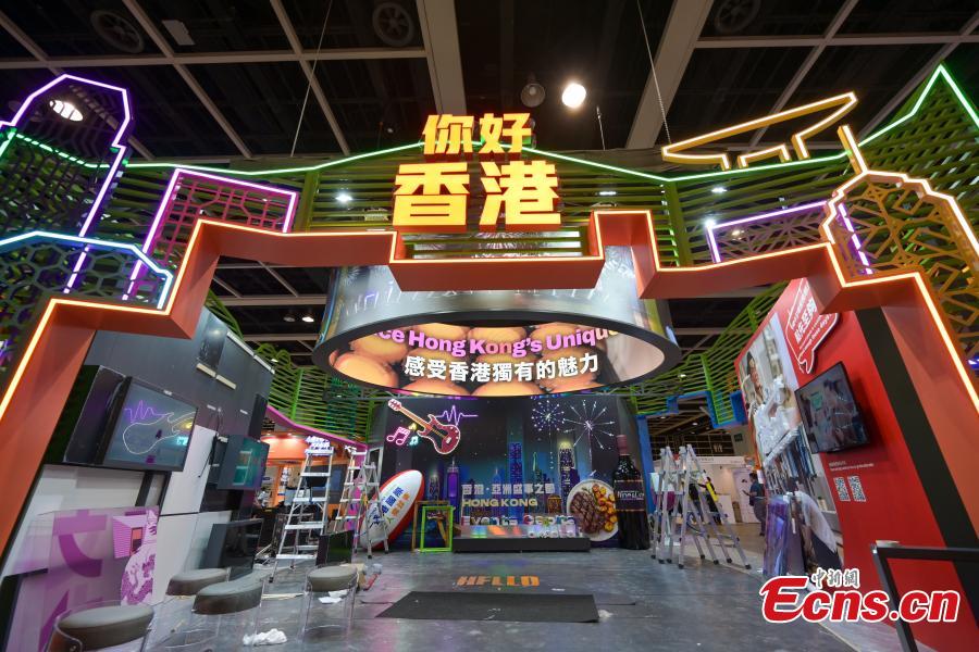 The photo shows the Hong Kong booth at the 38th International Travel Expo (ITE) Hong Kong, June 12, 2024. (Photo: China News Service/ Chen Yongnuo)