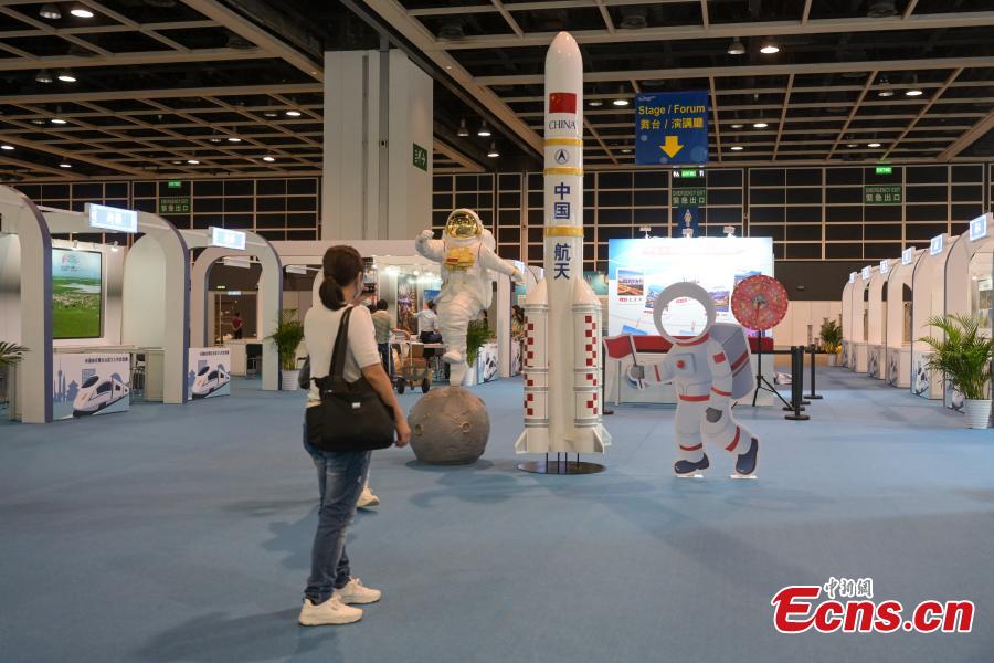 The picture shows the rocket model displayed by exhibitors at the 38th International Travel Expo (ITE) Hong Kong, June 12, 2024. (Photo: China News Service/ Chen Yongnuo)