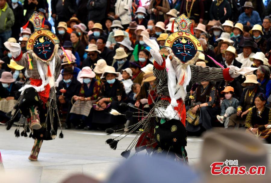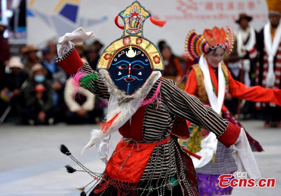 Artists stage a Tibetan opera performance near the Potala Palace in Lhasa, southwest China's Xizang Autonomous Region, on June 12, 2024. (Photo: China News Service/ Li Lin)