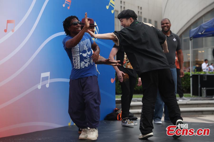 Chinese and American young people experience street dance together before the concert begins in Beijing on June 12, 2024. (Photo: China News Service/ Jiang Qiming)