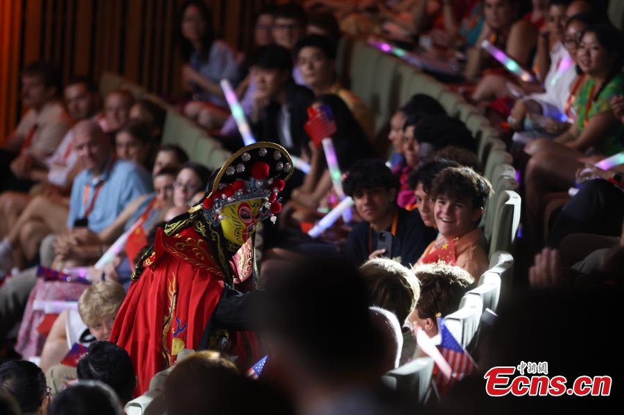 A Sichuan opera show attracts young people from China and the United States at a theme concert of the Sino-U.S. Youth Friendship held in Beijing on June 12. (Photo: China News Service/ Jiang Qiming)