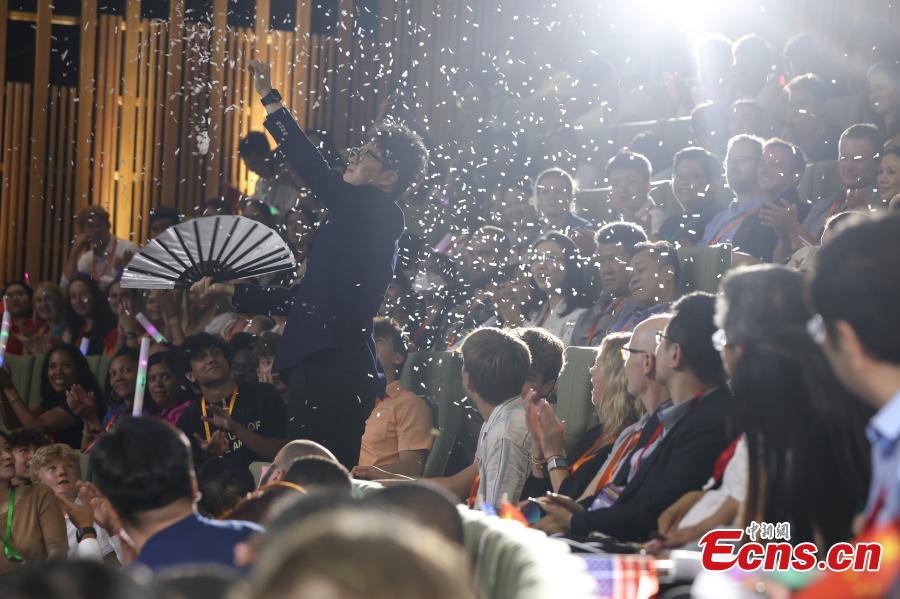 A creative magic show attracts young people from China and the United States at a theme concert of the Sino-U.S. Youth Friendship held in Beijing on June 12. (Photo: China News Service/ Jiang Qiming)