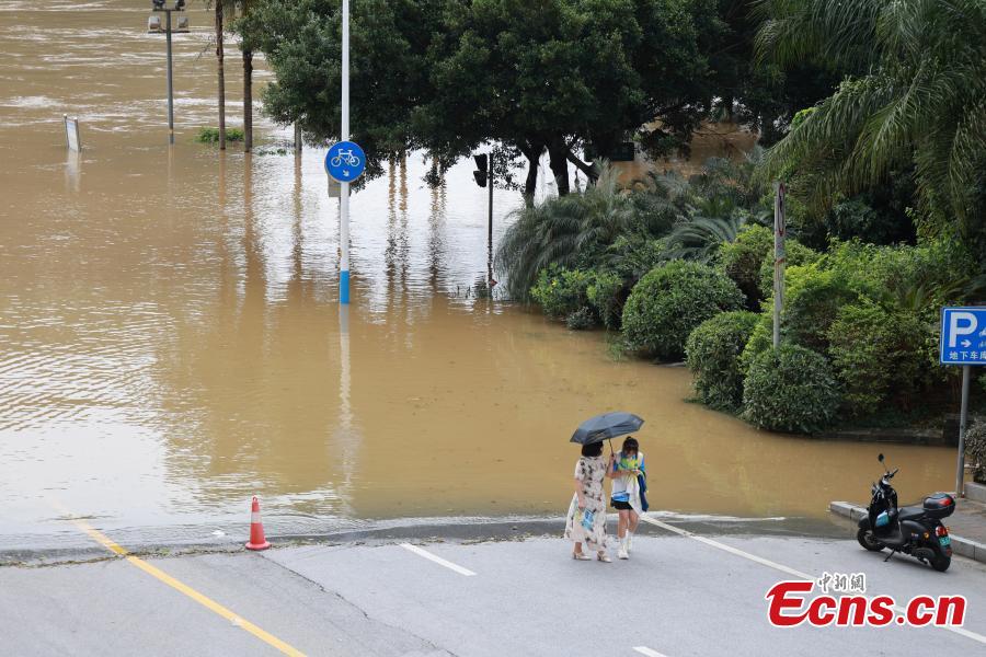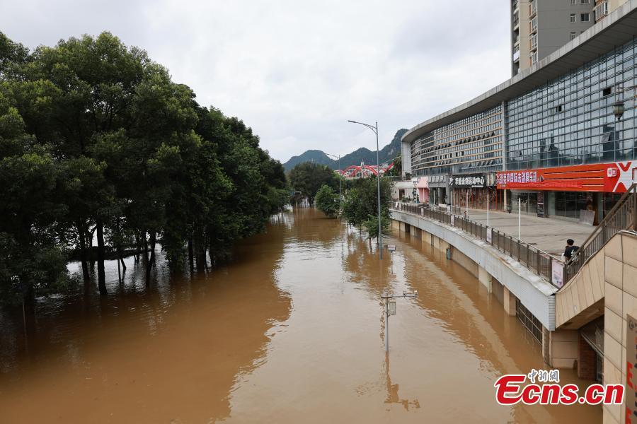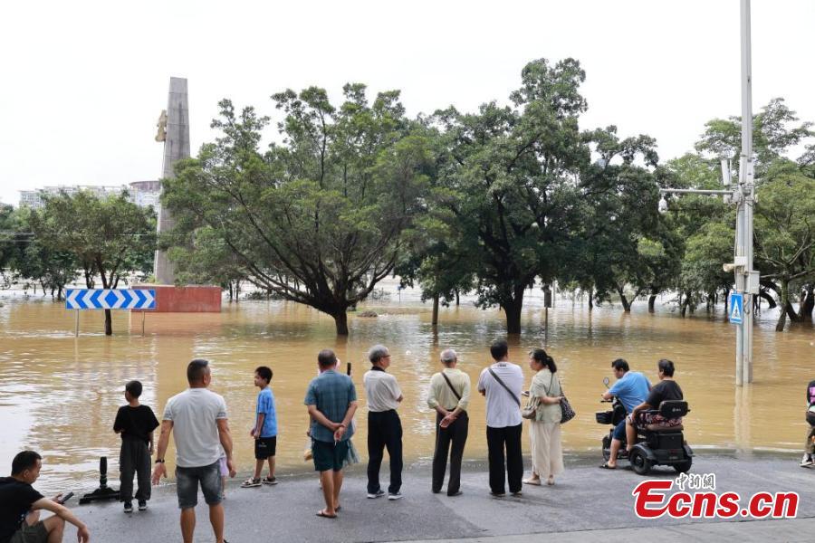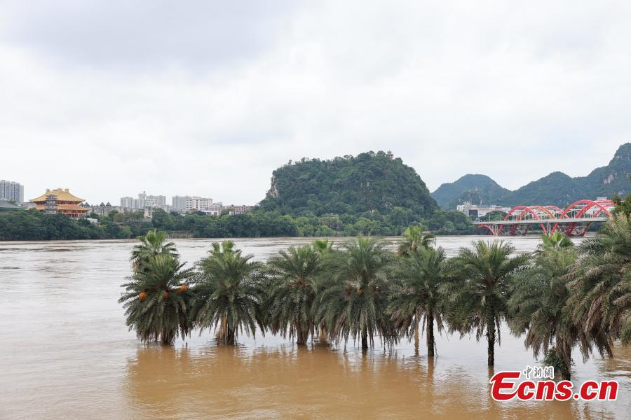 The Liujiang River exceeds the warning water level once again, June 26, 2024. (Photo: China News Service/ Lin Xin)