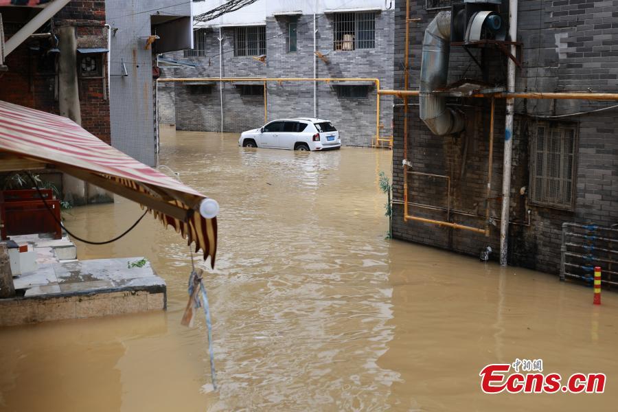 Residential buildings and cars along the Liujiang River in Liuzhou, Guangxi Zhuang Autonomous Region, China, are flooded, June 26, 2024. (Photo: China News Service/ Lin Xin)