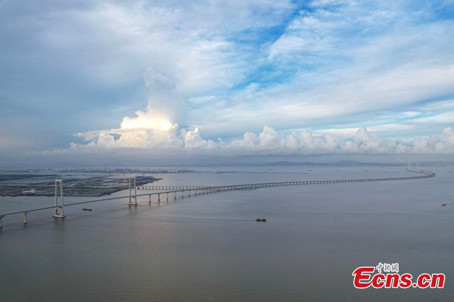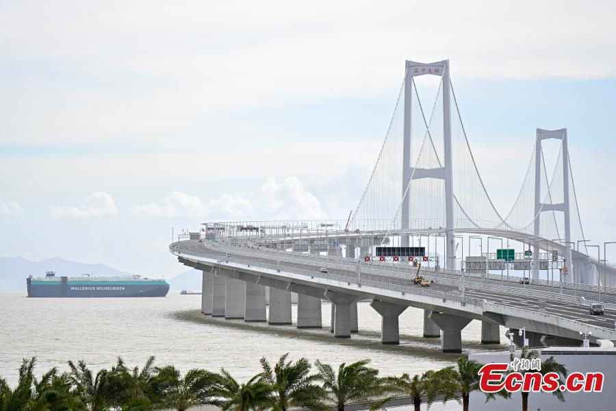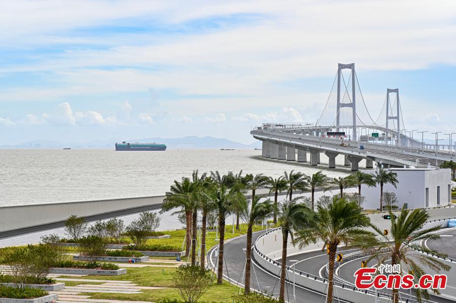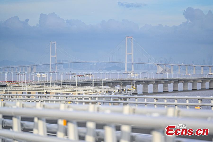 Shenzhen-Zhongshan Link will begin trial operation on Sunday. It consists of one underwater tunnel, two bridges and two artificial islands, making it one of the most challenging cross-sea cluster projects in the world.