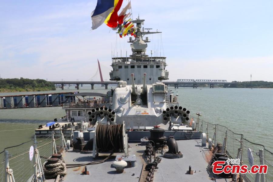 The Nanchang, China's first Type 051 guided-missile destroyer, docks at a port during an open day activity in Nanchang, east China's Jiangxi Province, July 11, 2024. (Photo: China News Service/Xiong Mianyang)