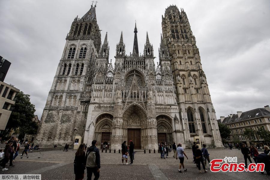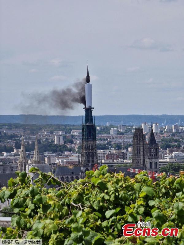 Smoke billows from the spire of Rouen Cathedral in Rouen, France, July 11, 2024. (Photo/Agencies)