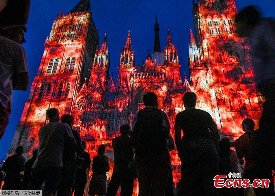 A mesmerizing symphony of light and sound, gracing the fa?ade of the magnificent Notre-Dame de Rouen cathedral in Rouen, France, June 09, 2023. (Photo/Agencies)