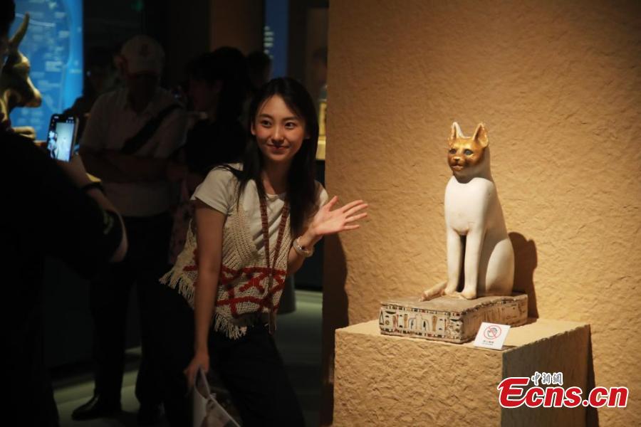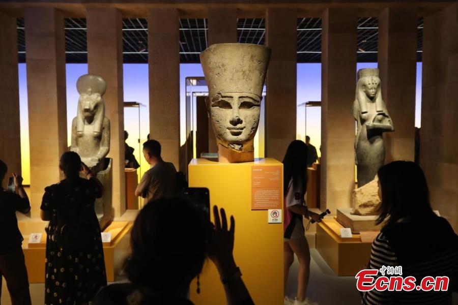 People visit the grand exhibition "On Top of the Pyramid: The Civilization of Ancient Egypt" at the Shanghai Museum, July 17, 2024. (Photo: China News Service/Zhang Hengwei)