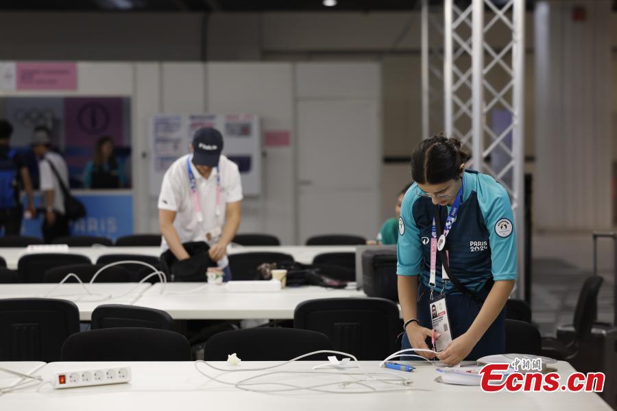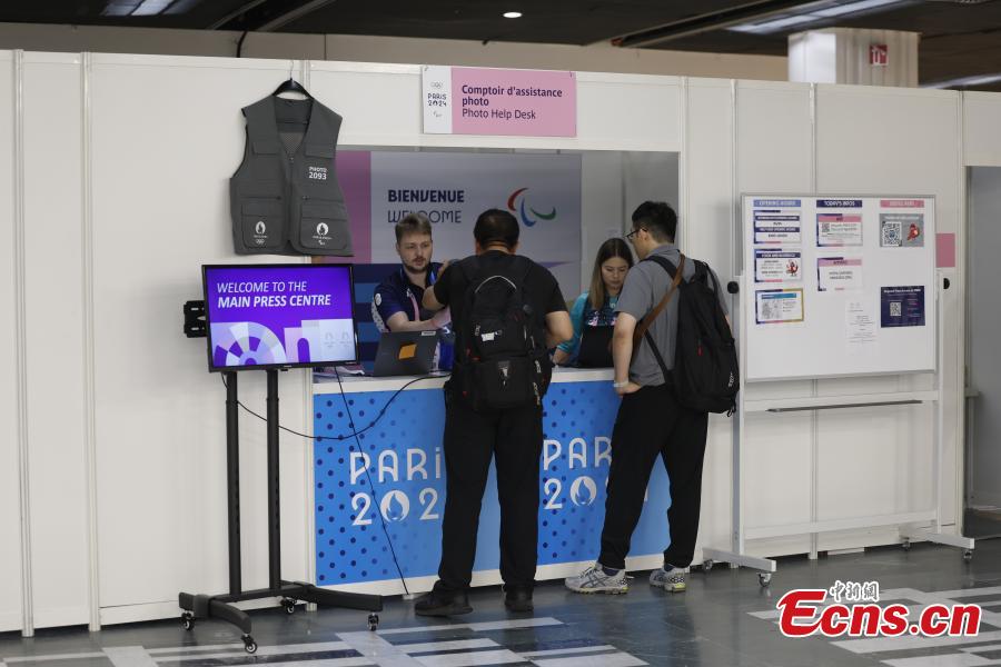 Journalists make registration at the Main Press Center of Paris 2024 in France, July 21, 2024. (Photo: China News Service/Fu Tian)