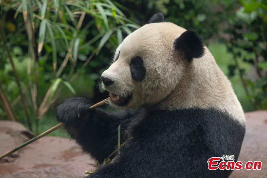 Photo released by San Diego Zoo Wildlife Alliance on July 19, 2024 shows Yun Chuan, eating bamboo at his new home at the San Diego Zoo in San Diego, California, the United States. (Photo provided to China News Service)
