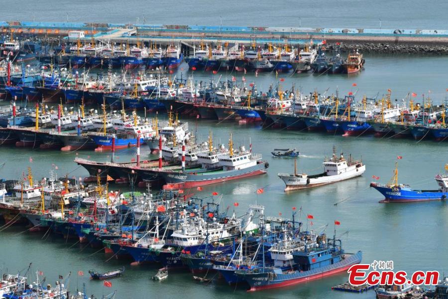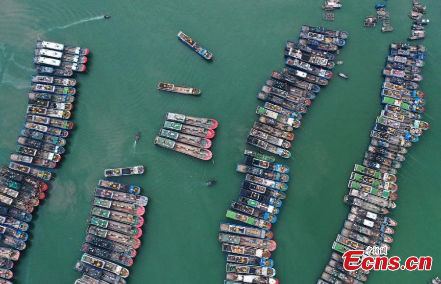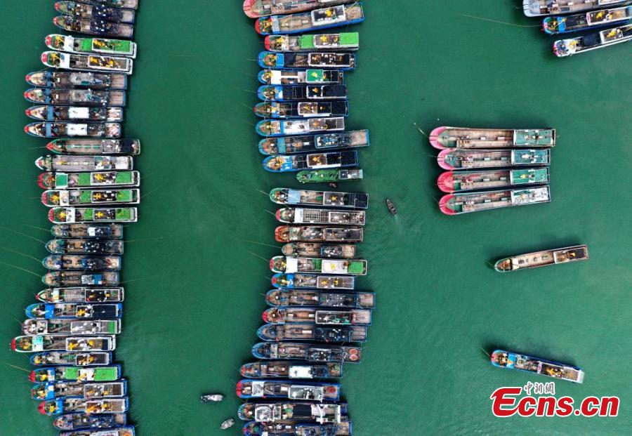 Fishing boats return to the Huangqi national fishing port or shelter as Typhoon Gaemi in Lianjiang County of Fuzhou City, east China's Fujian Province, July 23, 2024. (Photo: China News Service/Zhang Bin)