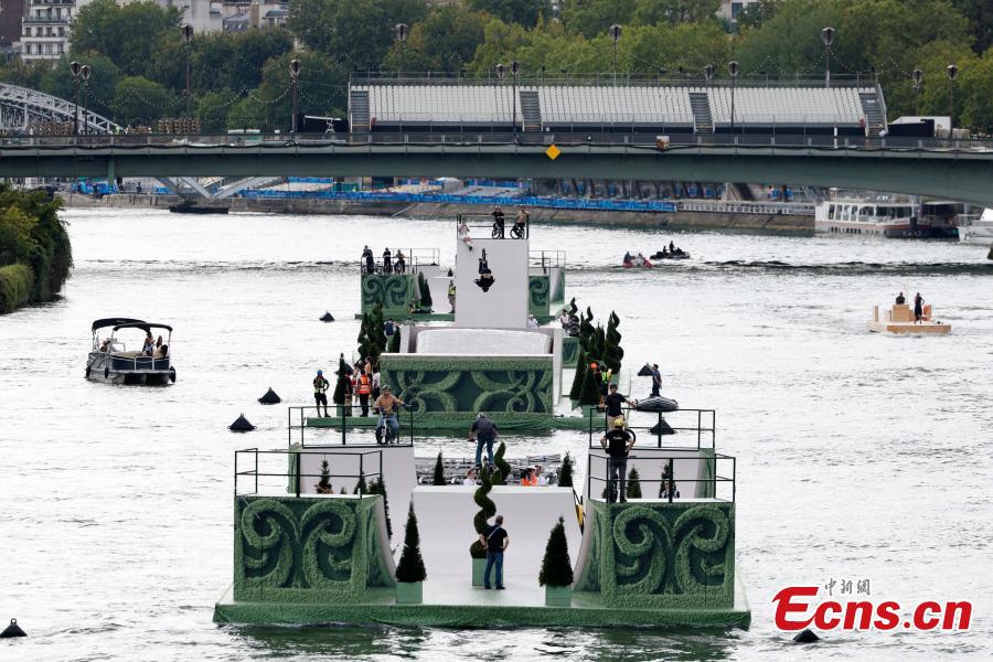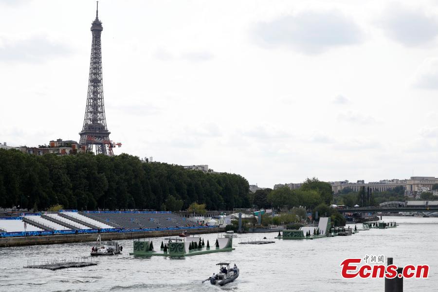Rehearsal for the Paris 2024 Olympics opening ceremony is underway on the River Seine, France, July 24, 2024. (Photo: China News Service/Fu Tian)