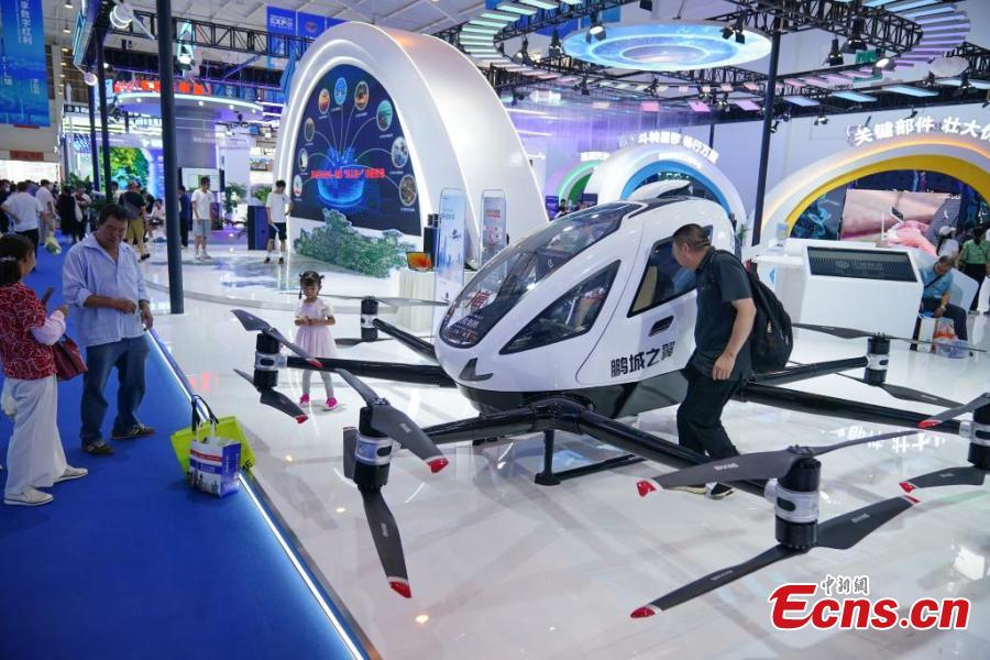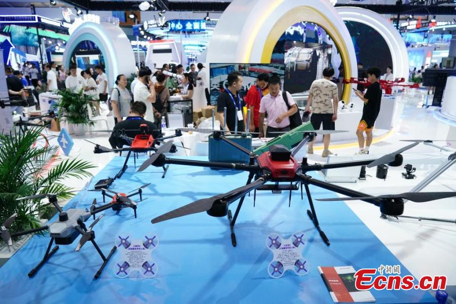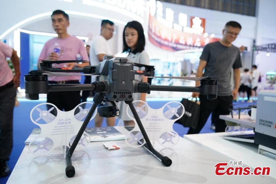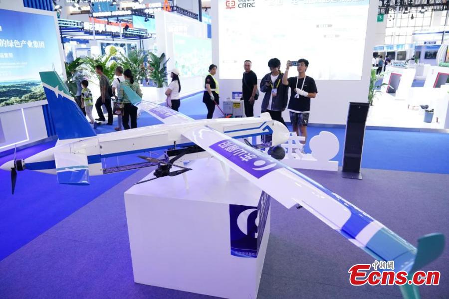 Visitors view a drone at the 8th China-South Asia Expo in Kunming, southwest China's Yunnan Province, July 24, 2024. (Photo: China News Service/Liu