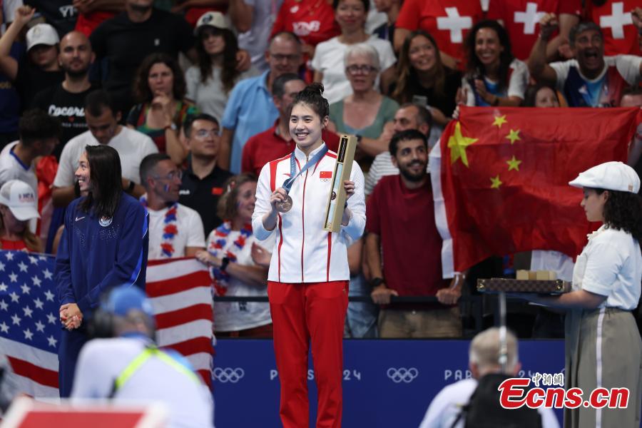 China's Zhang Yufei said on Sunday won bronze medal in the women's 100m butterfly at the Paris Olympics.