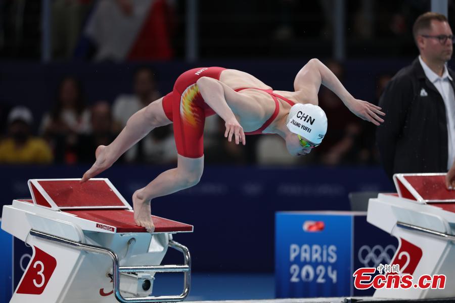Zhang Yufei of China competes during the women's 100m butterfly final of swimming at the Paris 2024 Olympic Games in Paris, France, July 28, 2024. (Photo: China News Service/Fu Tian)