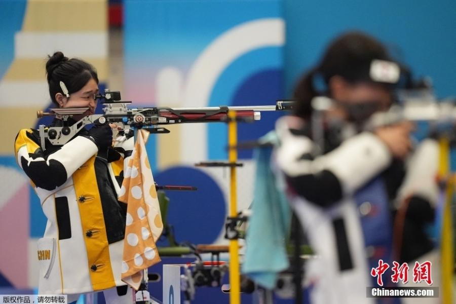 Huang Yuting of China competes during the 10m air rifle women's final of shooting at the Paris 2024 Olympic Games in Chateauroux, France, July 29, 2024. (Photo provided to China News Service)