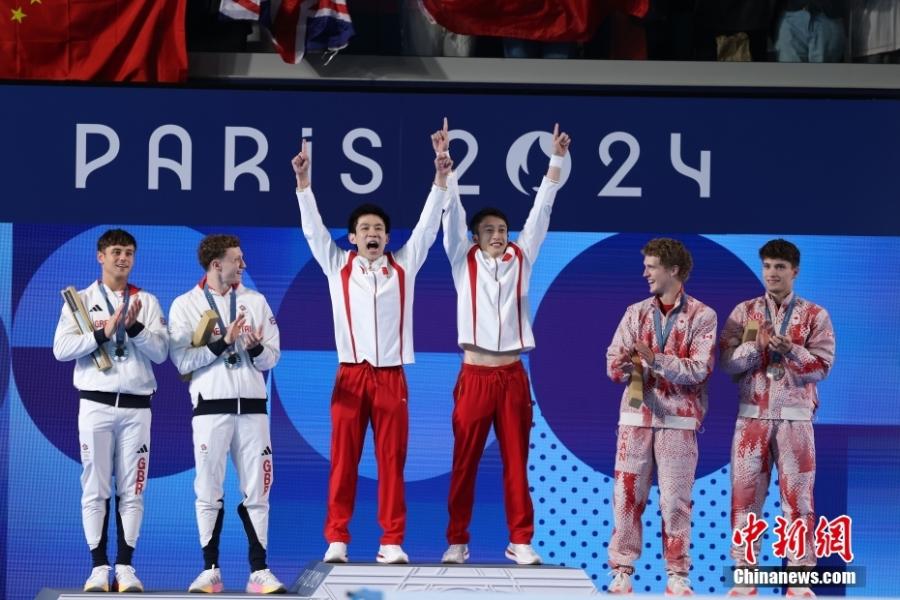 Lian Junjie/Yang Hao of China compete during the men's synchronised 10m platform final of diving at the Paris 2024 Olympic Games in Saint Denis, near Paris, France, July 29, 2024. (Photo: China News Service/Fu Tian)