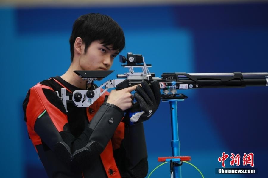 Sheng Lihao of China competes during the men’s 10m air rifle final at the Paris 2024 Olympic Games in Chateauroux, France, July 29, 2024. (Photo provided to China News Service)
