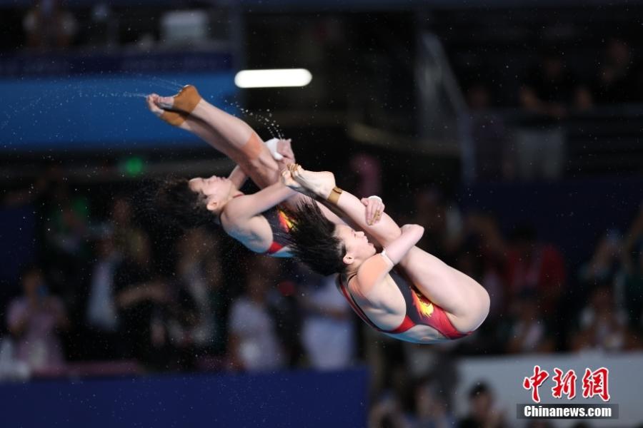 Chen Yuxi/Quan Hongchan of China compete during the women's synchronized 10m platform final of diving at the Paris 2024 Olympic Games in Saint Denis, France, July 31, 2024. (Photo: China News Service/Fu Tian)