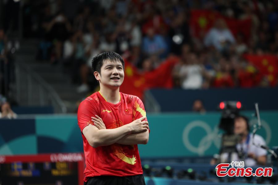 China's Fan Zhendong overcame Truls Moregard of Sweden 4-1 to win the table tennis men's singles gold medal at the Paris Olympic Games on Sunday.