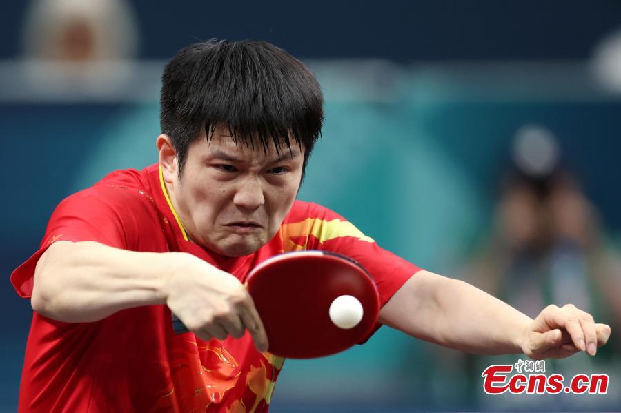 Fan Zhendong of China competes during the table tennis men's singles final at the Paris Olympics, France, Aug. 4, 2024. (Photo: China News Service/Fu Tian)