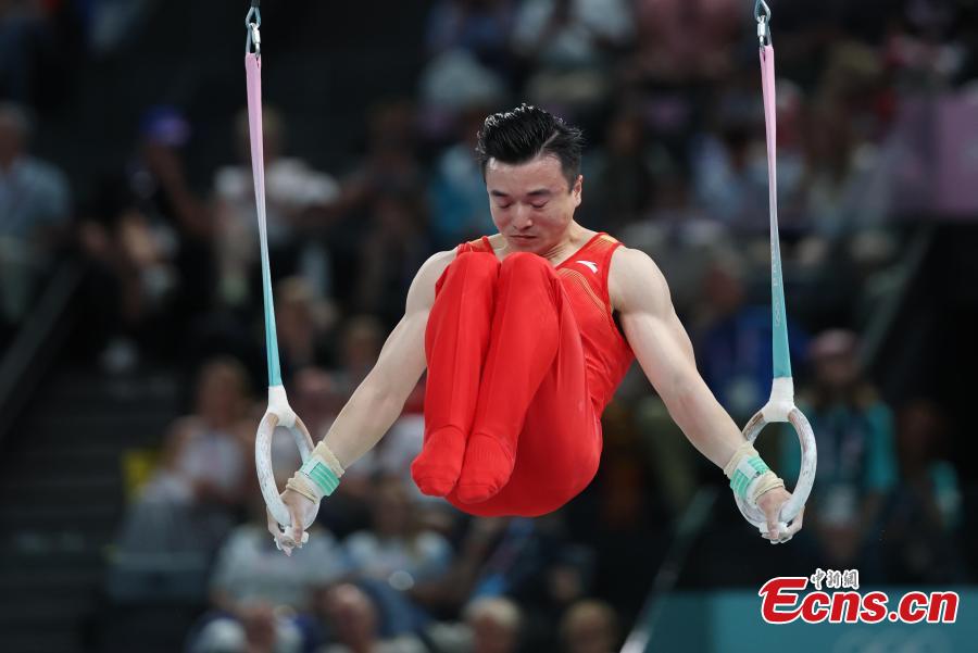 Liu Yang of China competes during the men's rings final of artistic gymnastics at the Paris 2024 Olympic Games, France, Aug. 4, 2024. (Photo: China News Service/Sheng Jiapeng)