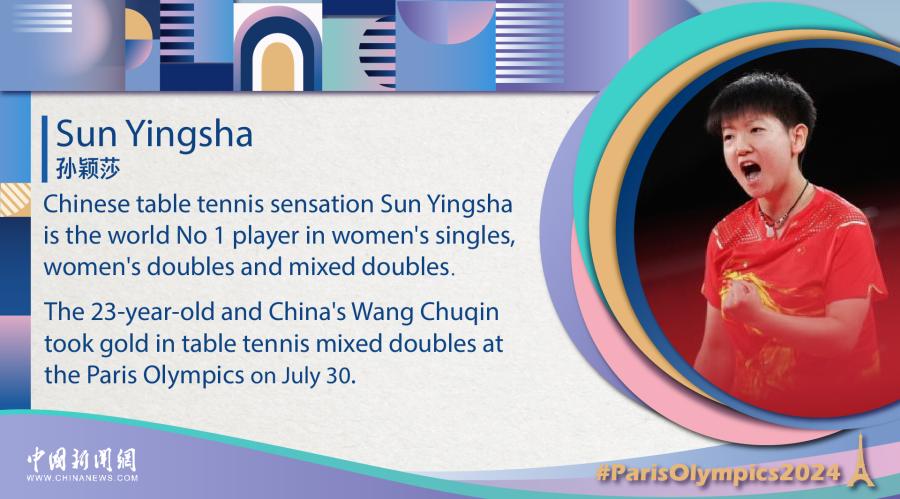 The 23-year-old Sun Yingsha and Wang Chuqin took gold in table tennis mixed doubles at the Paris Olympics on July 30.